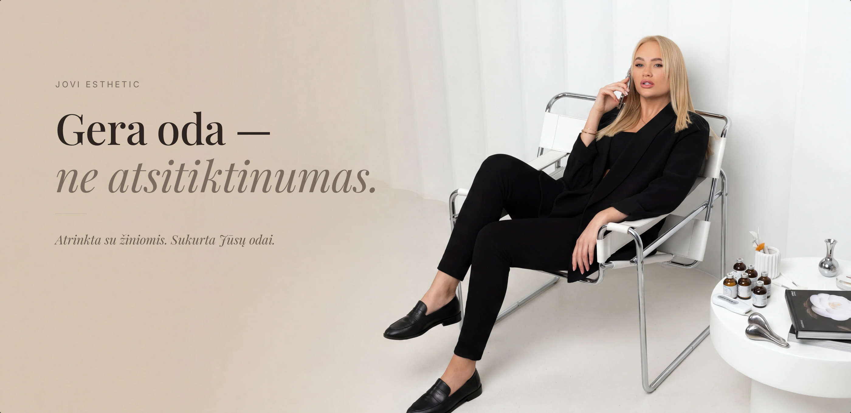 "Visada galvojau, kad reikia brangių procedūrų, kad veidas būtų ‘tvarkingas’. Bet Jovita man sukomplektavo tokią rutiną, kad dabar atrodo, lyg kasdien pas kosmetologę lankausi – nors realiai tik namie pasitepu. Tikrai siūlau apsilankyt, net jei tik dėl konsultacijos – viena geriausių patirčių ever"